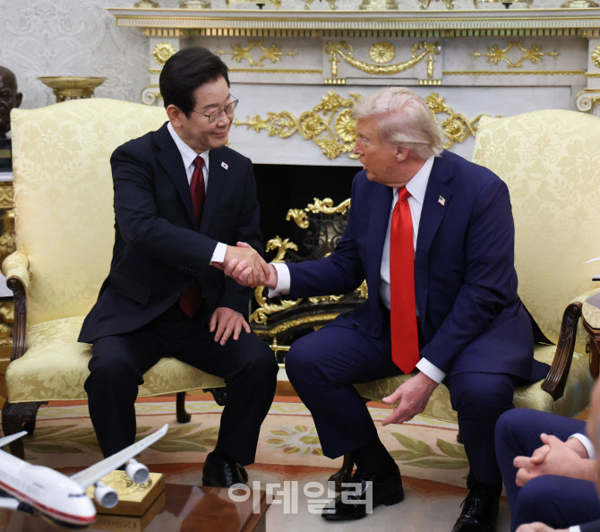 | | 이재명 대통령과 도널드 트럼프 미국 대통령이 8월 25일(현지 시간) 미국 워싱턴DC 백악관에서 한미 정상회담을 하고 있다.(사진=뉴시스) |